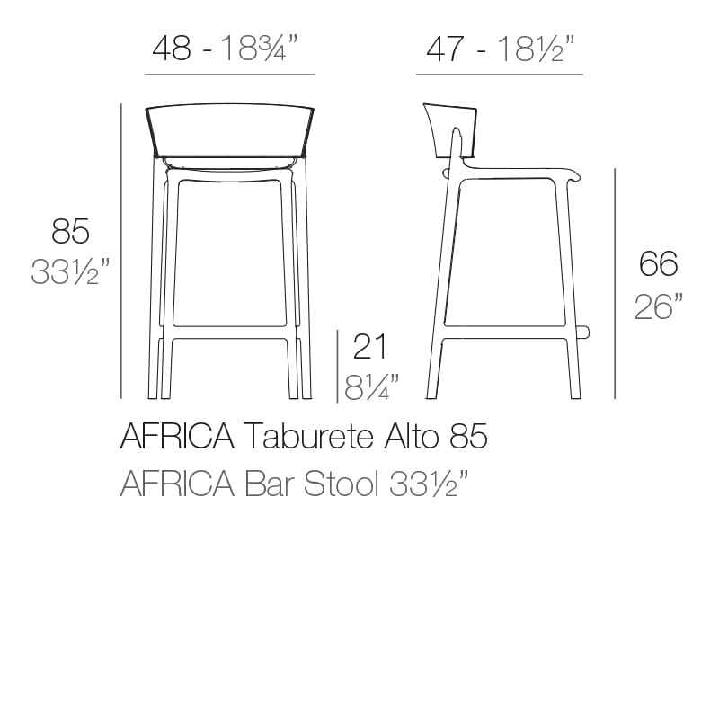 - Krzesło barowe Africa jest przeznaczone do użytku zarówno wewnętrznego, jak i zewnętrznego, dzięki czemu można je stosować w różnych miejscach, od nowoczesnych kuchni po ogrody i tarasy.